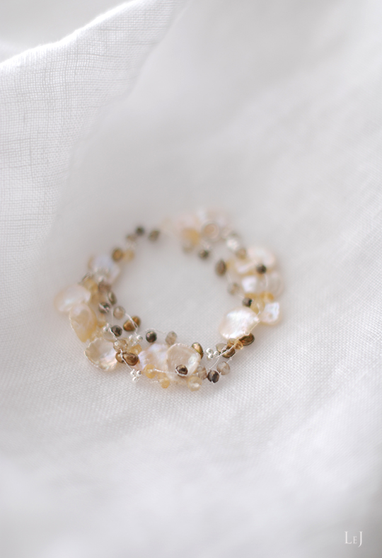写真では表現しきれない、スイートできらきらした、LeJの世界観を散りばめたブレスレットです。
