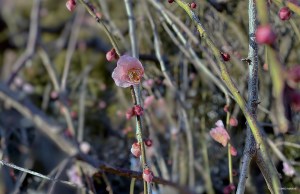 公園には枝垂れ梅が咲き始めていました。