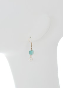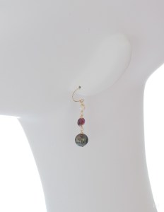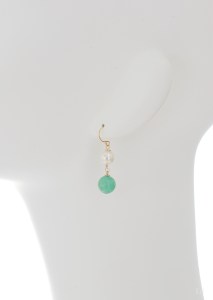 LeJのピアスをトルソーに着けてご覧いただくのも今回でおわりです。1点はローマングラス、もう1点ではヘミモルファイトをパールと合わせています。メロウなグリーンで、ちょっとひと息つきたいとき。イヤリングとしてもお薦めできます。無料でのお直しは明日31日まで、以降は300円の加工料をいただきます。